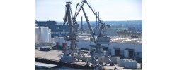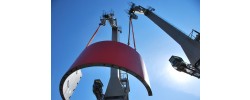 Do przeładunku użyto – oprócz istniejących na miejscu dźwigów portowych – również 350-tonowego żurawia samojezdnego. Komponenty umieszczono najpierw na składzie o powierzchni około 6.000 metrów kwadratowych, skąd załadowano je na naczepy typu Tiefbett.